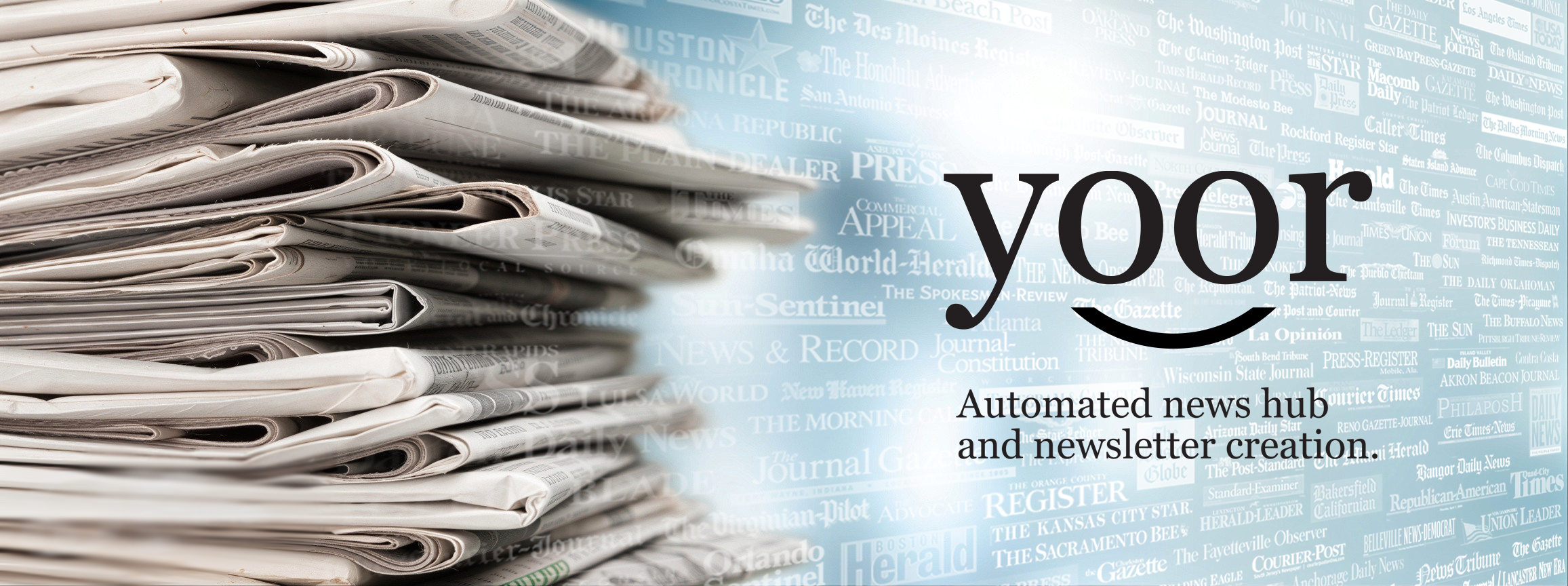 Newsletters shouldn't take hours to create. Yoor combines your brand's knowledge with real-time data analysis, source verification and advanced writing tools to help you go from noisy distracting news from hundreds of sources to a clean focused newshub and weekly newsletter that engages lifelong subscribers—without the headache.